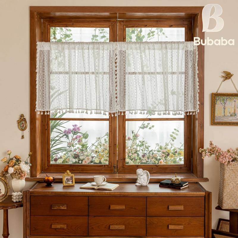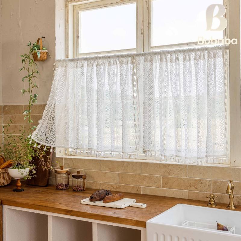 Rideaux courts en voile à franges ajourées de style américain Bubaba pour cuisine et chambre à coucher - Rideaux courts en voile
