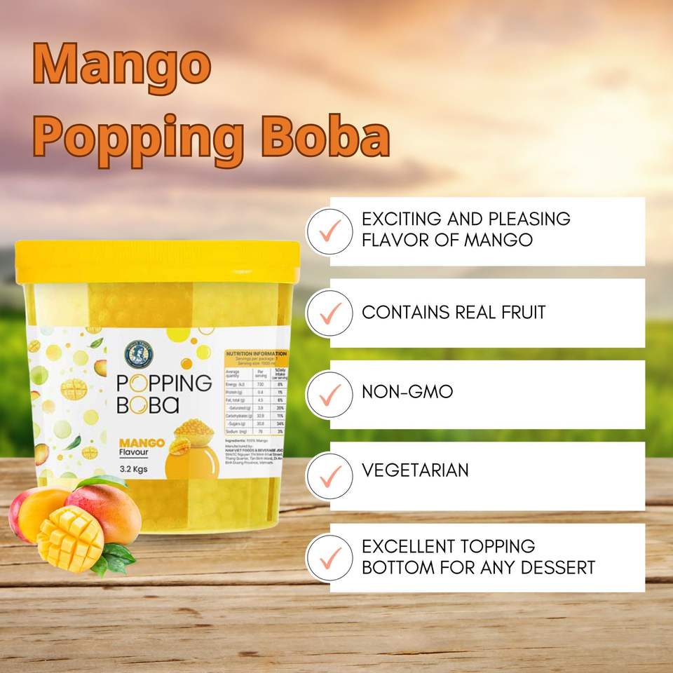 Contenu :Boba éclatant saveur mangue pour thé aux perles, dessert
