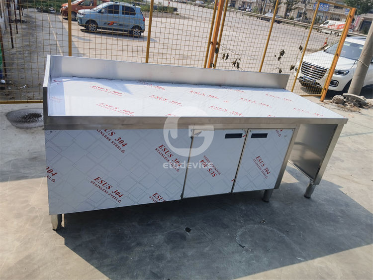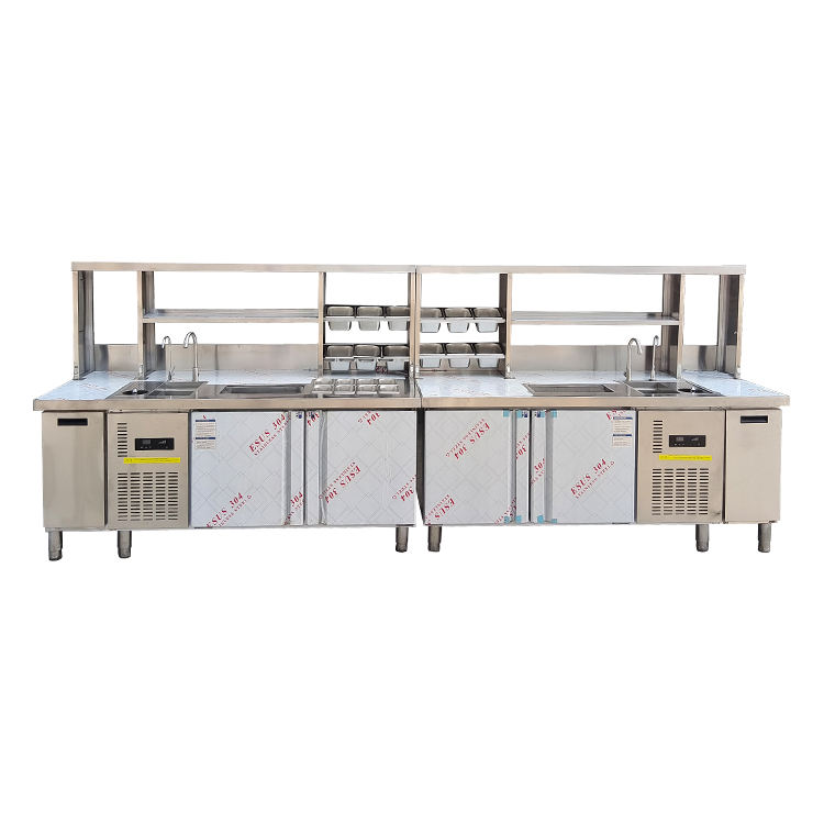 Comptoir de préparation de Bubble Tea en acier inoxydable bleu