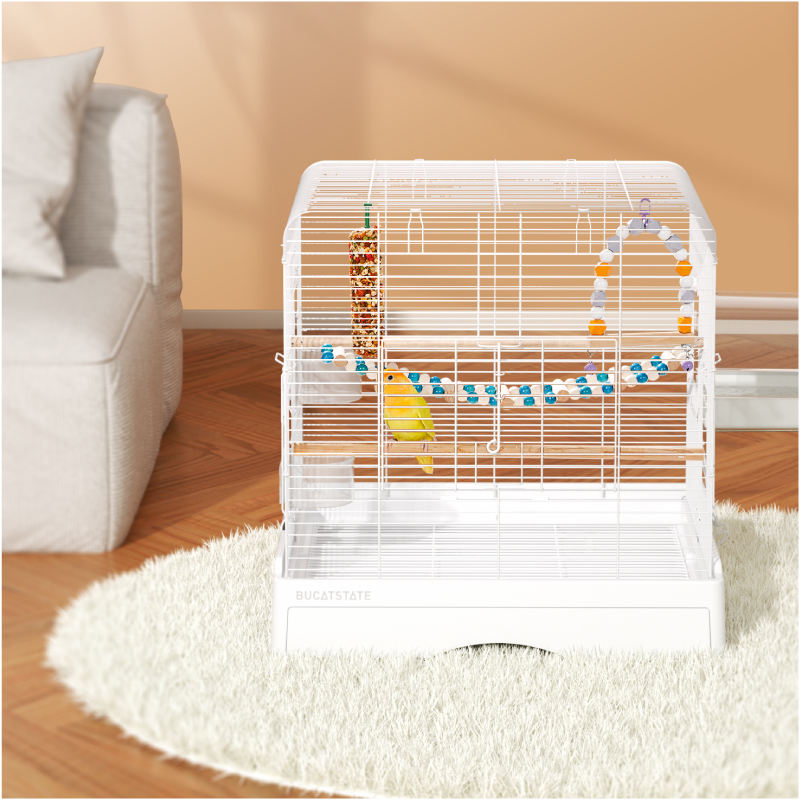 Bucatstate Vente en gros Cages à oiseaux métalliques de luxe classiques et solides, de grande taille, pour l'élevage de perroquets, avec plateau et boîte en plastique, conception personnalisée