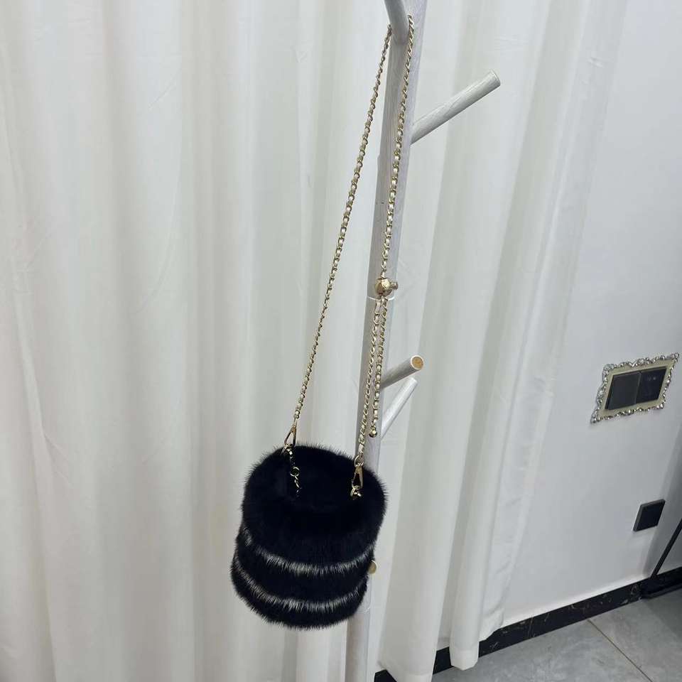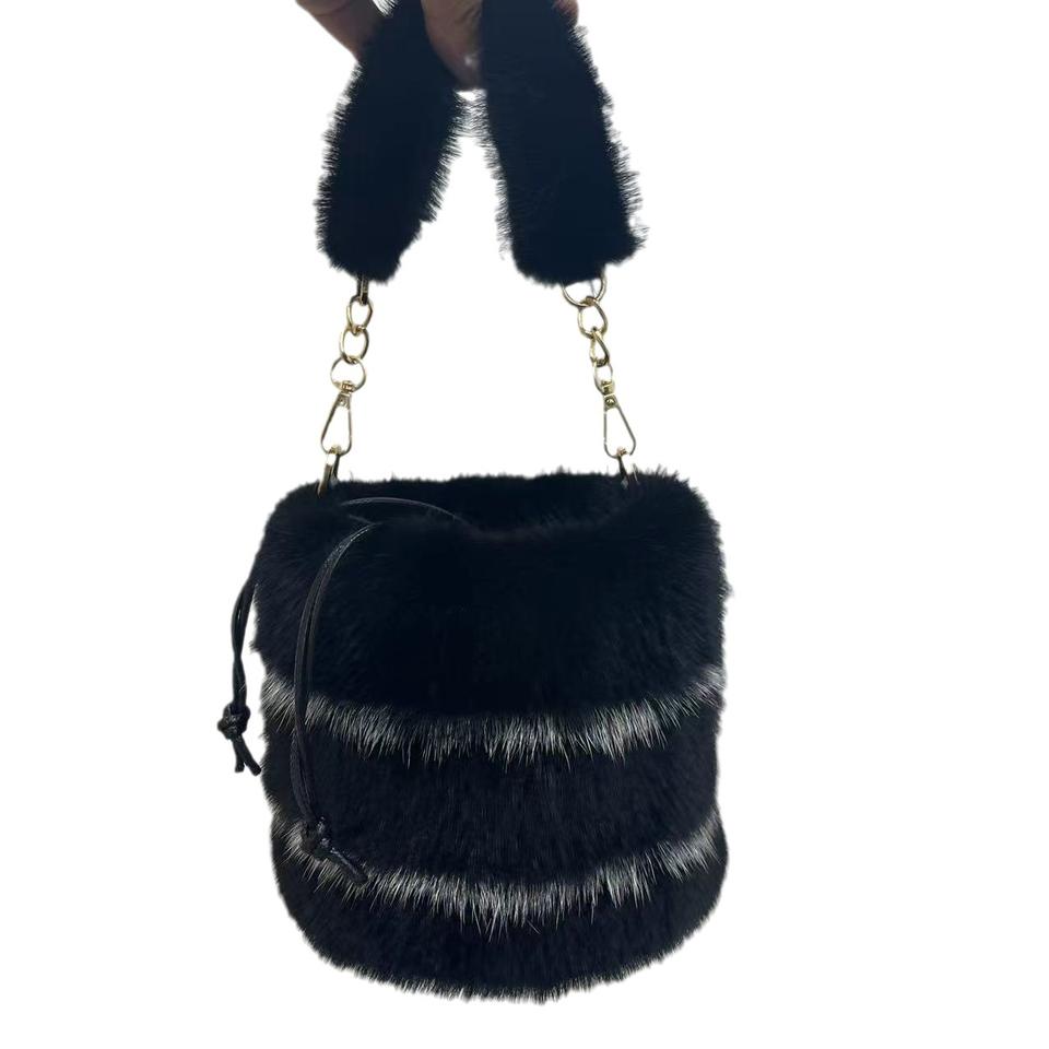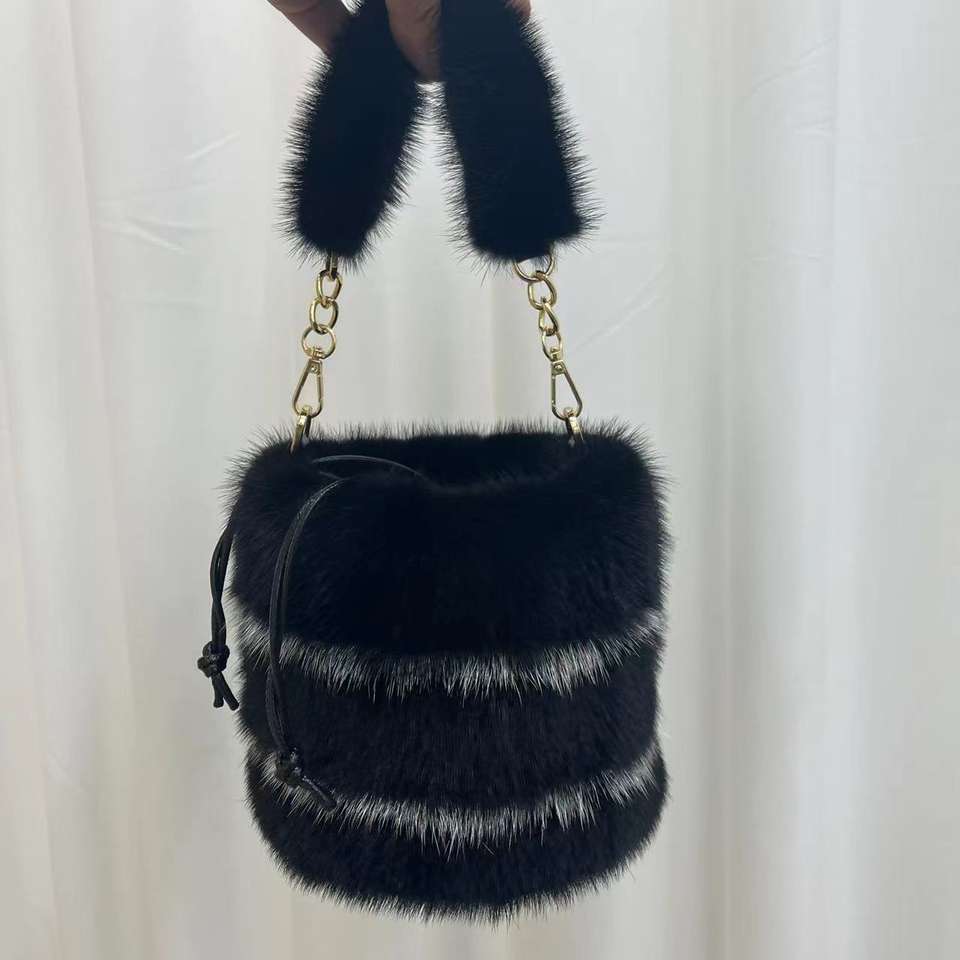 Bucket Bags Long Dyed Genuine Mink Fur Pelt Shoulder Bag for Daily Elegance Garment & Auto Upholstery Use