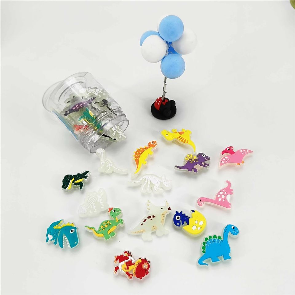 Breloques lumineuses 2D en PVC fluorescent pour chaussures, motif dinosaure, pour sacs de plage souples, décorations en plastique à position supérieure