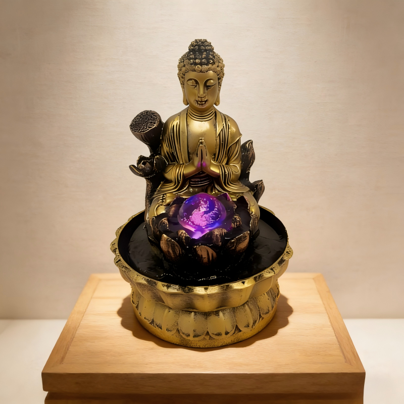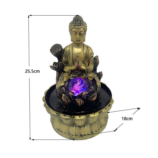 Fontaine d'eau avec statue de Bouddha et boule LED lumineuse, décoration zen avec lotus, fontaine de table pour la maison et le bureau