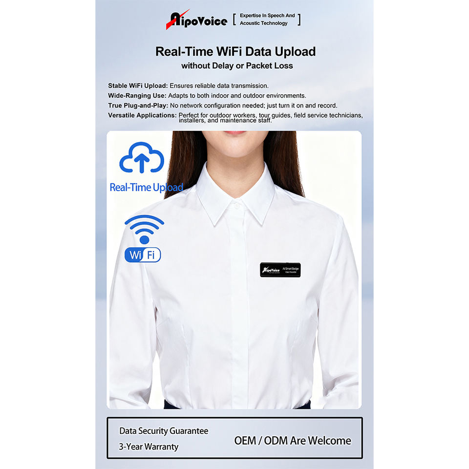 Badge audio MP3 Wi-Fi tout-en-un avec 32 Go USB pour la gestion des équipes, la gestion du personnel et la sécurité d'entreprise