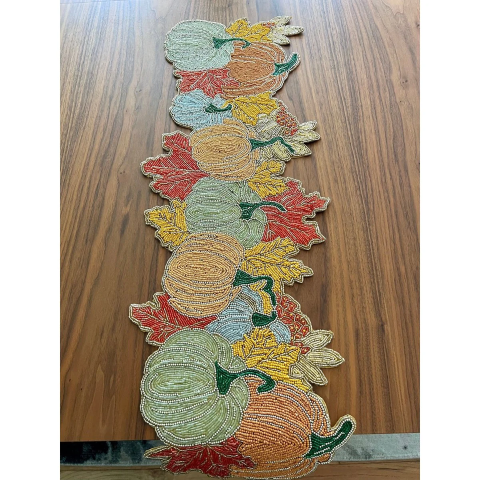 Chemin de table perlé en tissu polyester économique Perles de verre au design floral brodé en gros Personnalisable Écologique