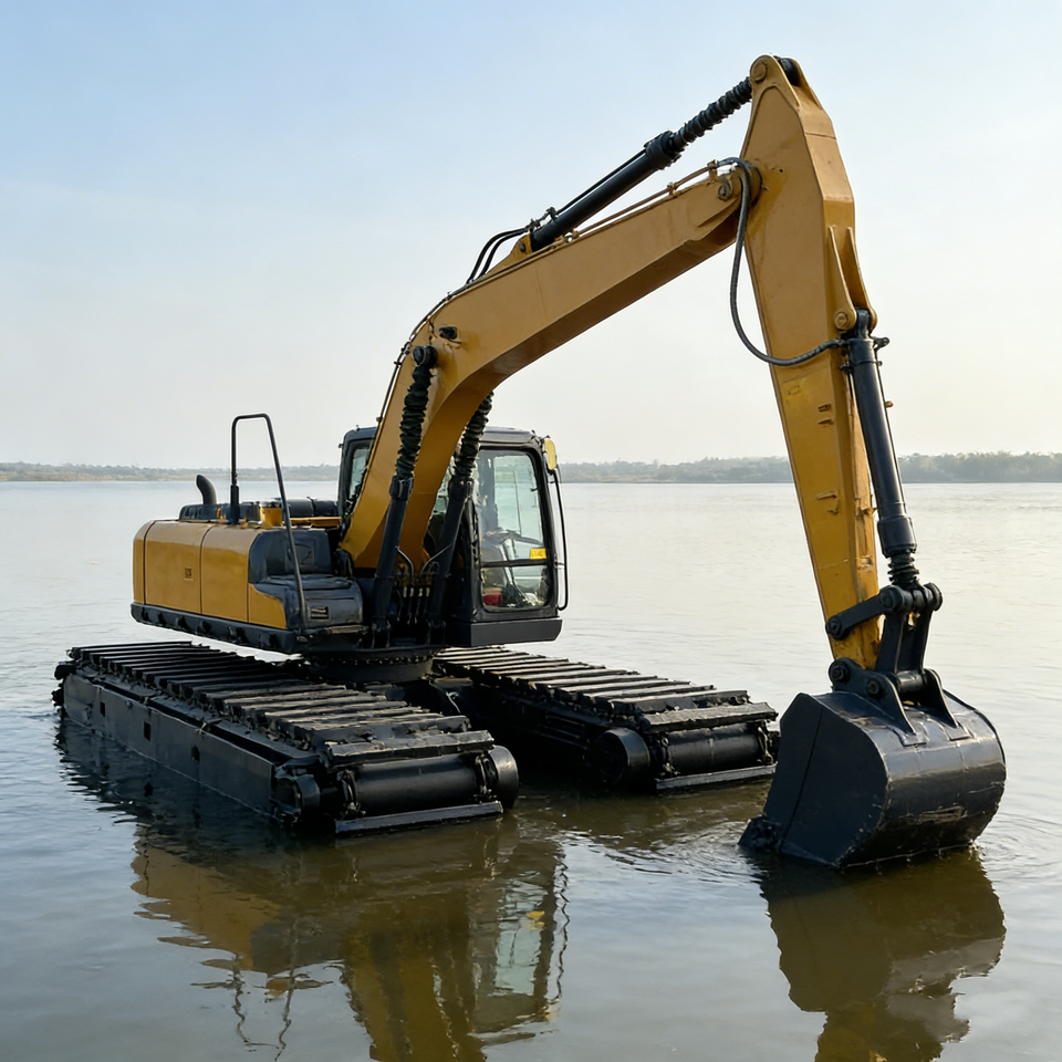 Excavatrice amphibie polyvalente et économique pour le creusement de bassins et la lutte contre les inondations