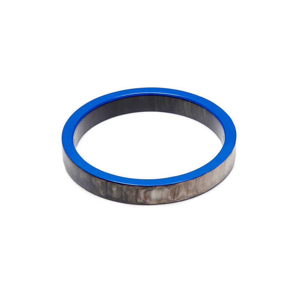 Buffalo Horn Eco-Friendly Love Bangle Bright Blue Black Slim Handmade Polished Natural Lacquered Edge Bracelet