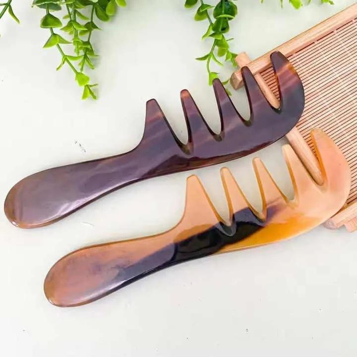 Peigne rectangulaire moderne en corne de buffle, fait main, écologique