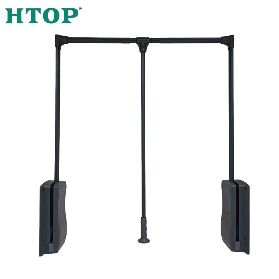 Porte-vêtements escamotable de type buffer, gain de place, accessoire pour armoire haute de chambre à coucher.
