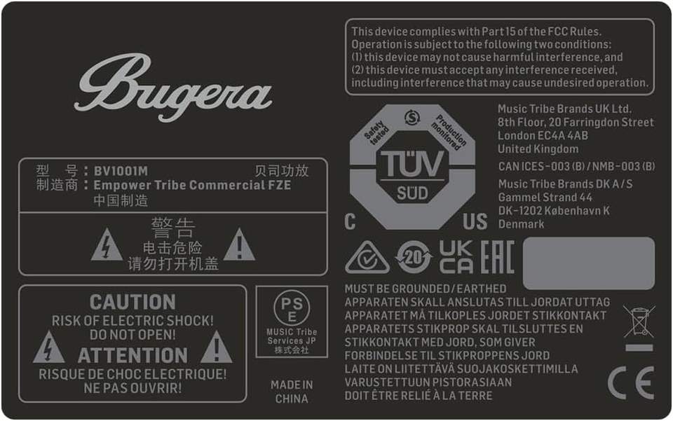 Amplificateur de basses Bugera VEYRON BV1001M ultra-compact de 2 000 watts de classe D, préampli MOSFET, compresseur, technologie DYNAMIZER