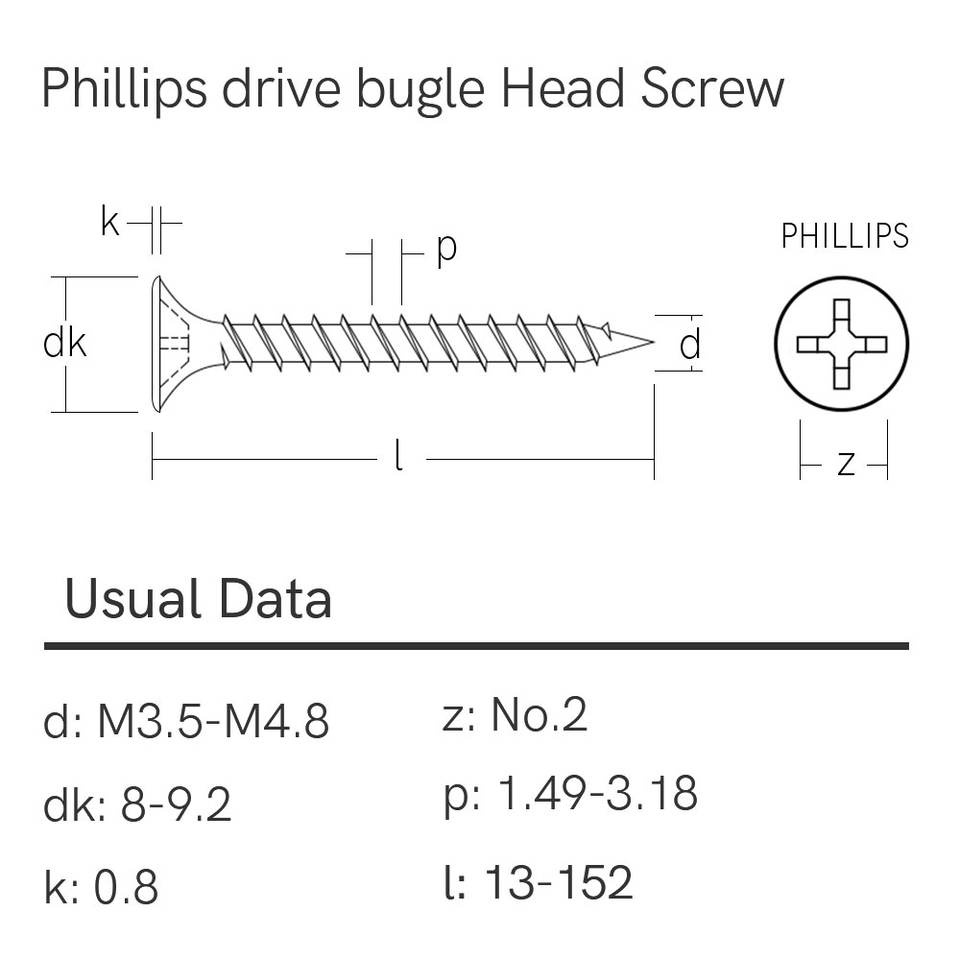 Vis à cloison sèche à tête de trompette, fraisée, 3,9 mm, pour une finition sans joint