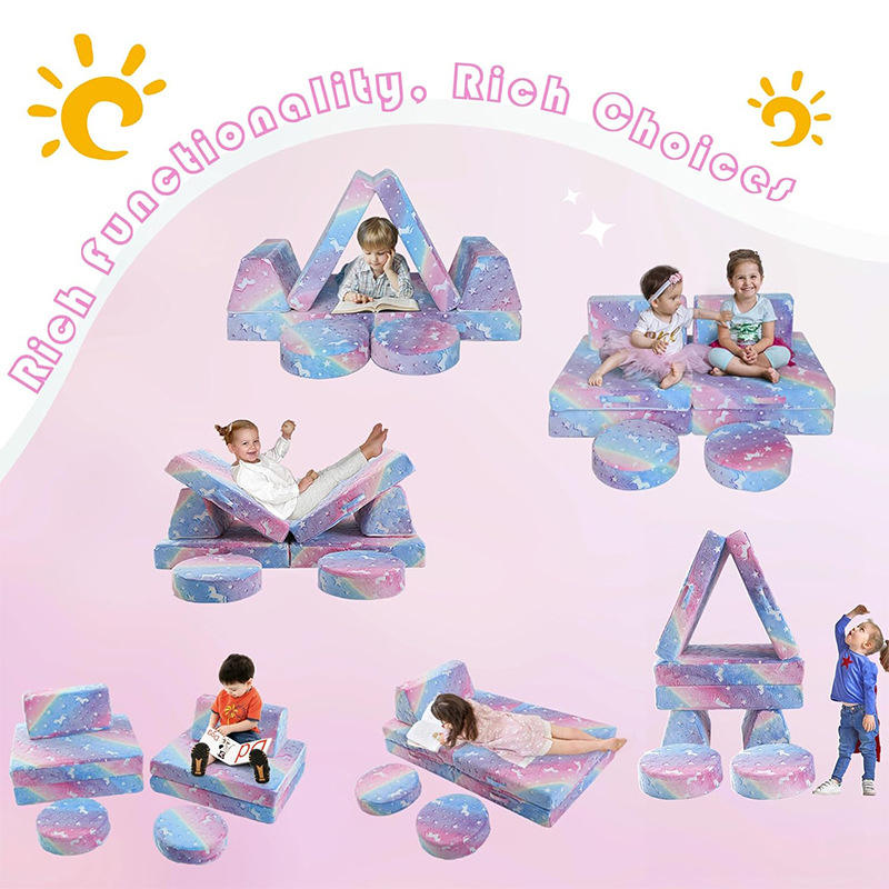 Ensemble de canapés en blocs de construction pour filles, mousse haute résilience, compressible, pliable, château de jeu avec design licorne