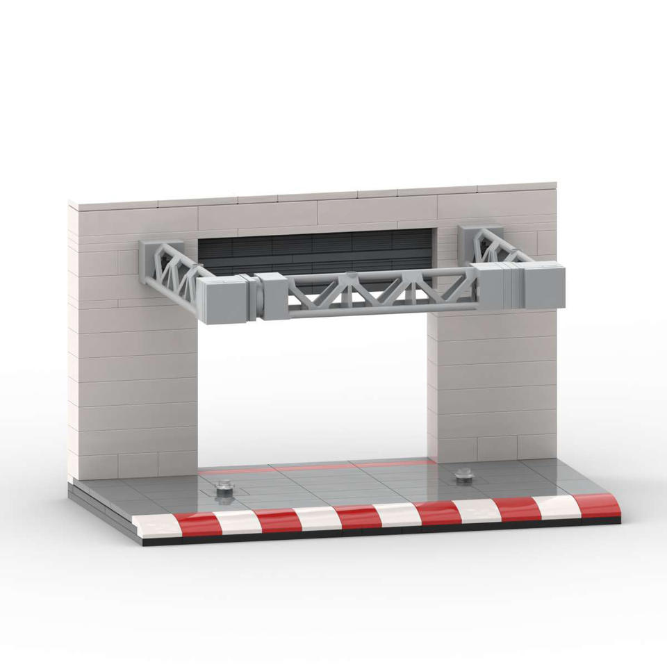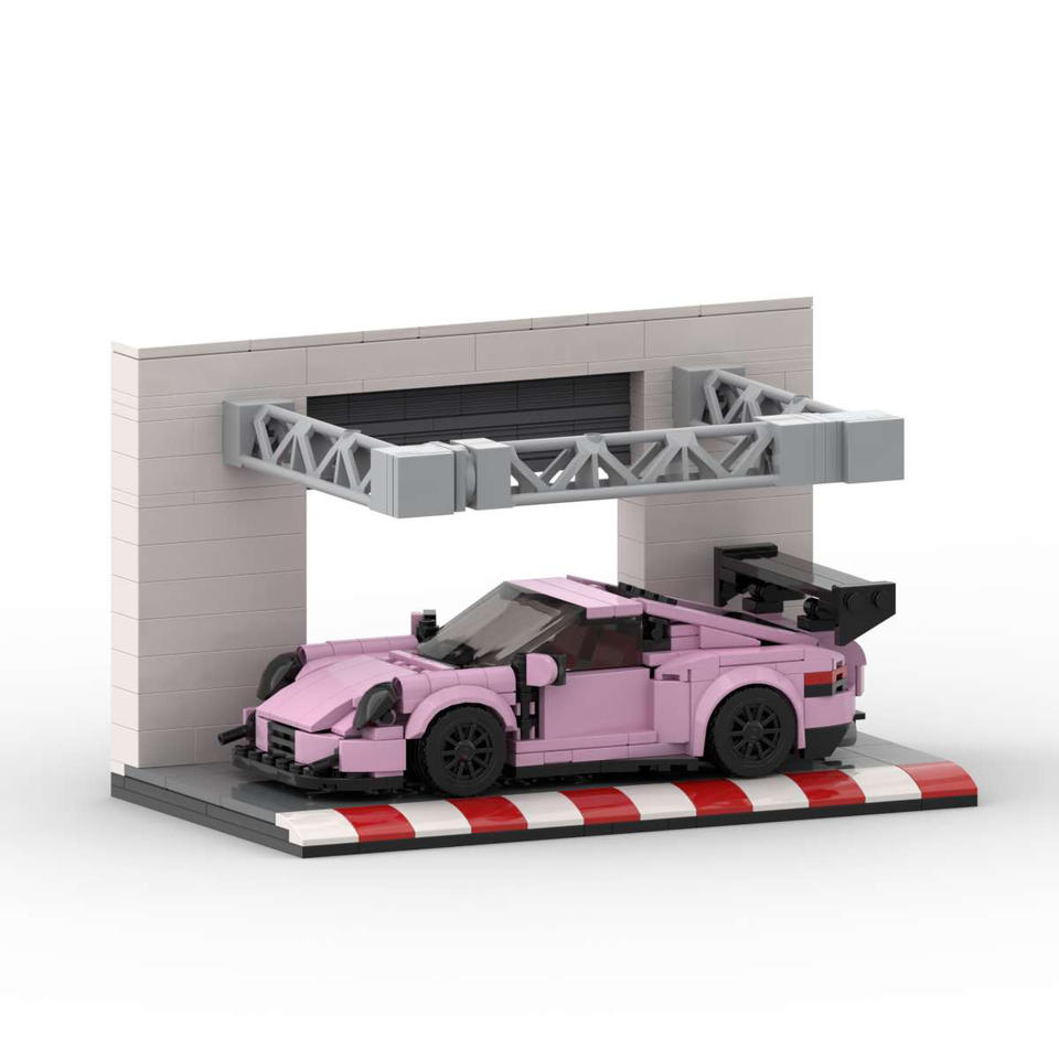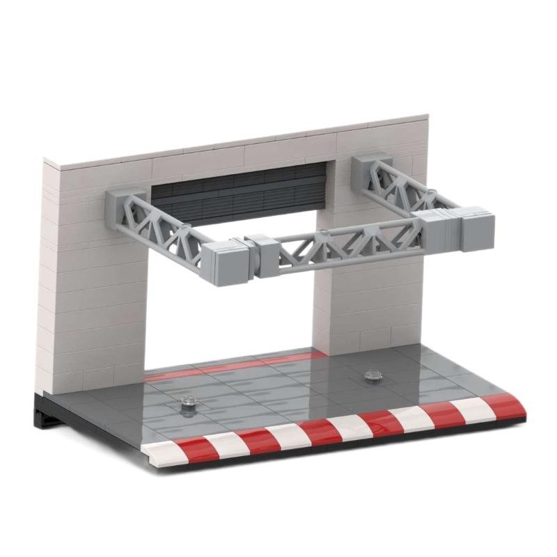 Blocs de construction Moc-80856, station de réparation de voitures de course à 8 grilles, présentoir de jouets