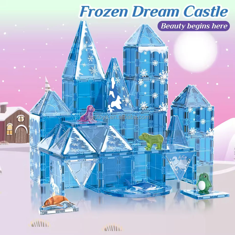 Ensemble de blocs de construction château congelé blocs de construction à aimant 3D carreaux magnétiques pour enfants blocs de construction magnétiques jouets pour enfants cadeaux