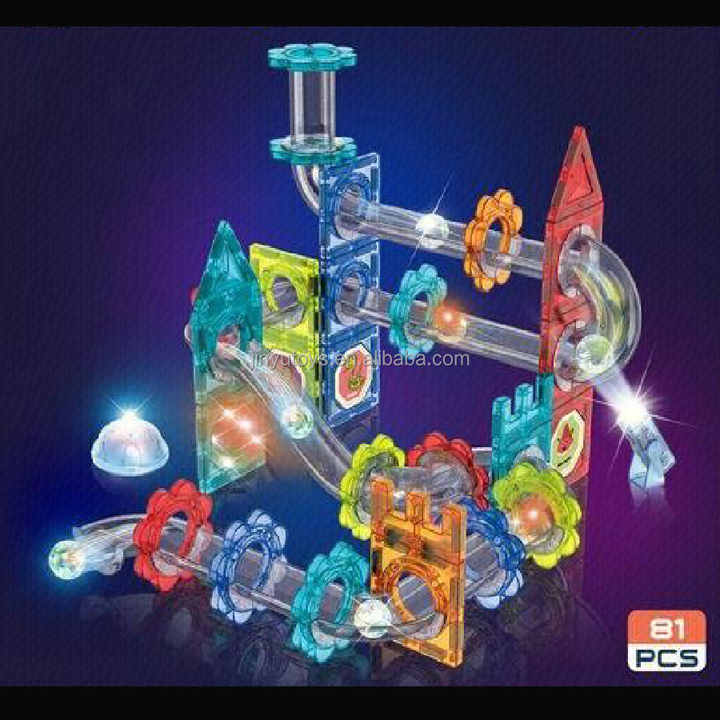 Bricolage de construction de carreaux magnétiques avec boule lumineuse marbre course bloc de construction magnétique jouets enfants ensemble 3D jouets éducatifs