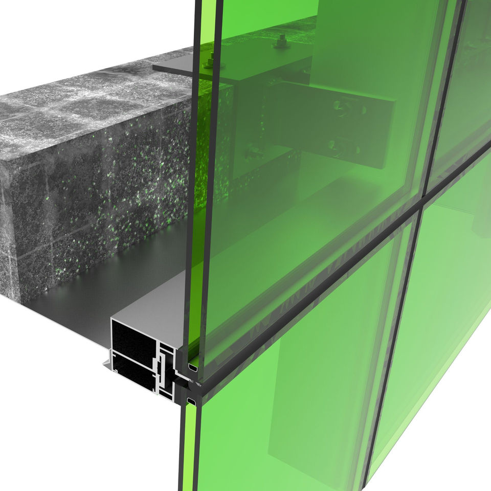 Matériaux de construction, façade de bâtiment commercial, verre de façade, verre à points de support, fixation sans cadre, rideau sans cadre