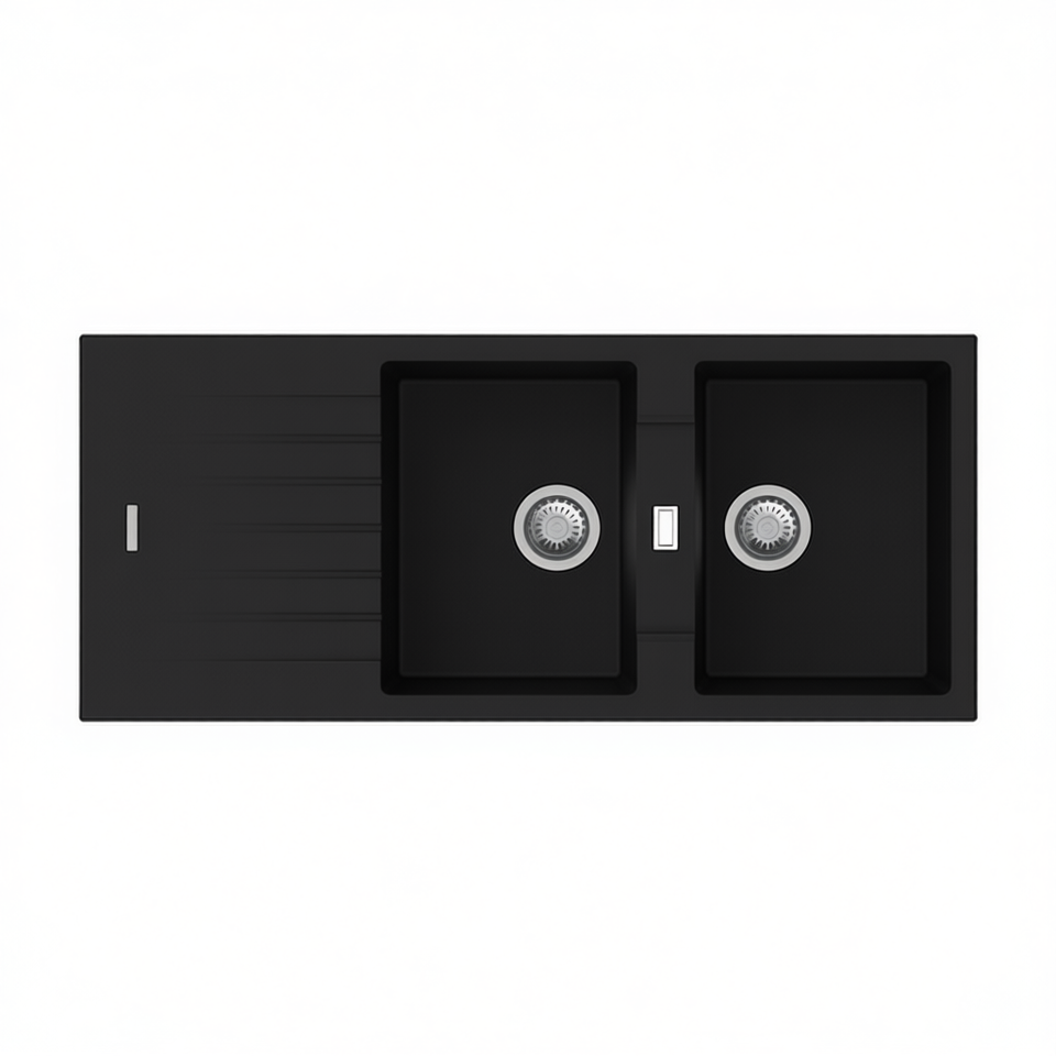 Évier de cuisine encastré double bac en synthétique 127 cm blanc
