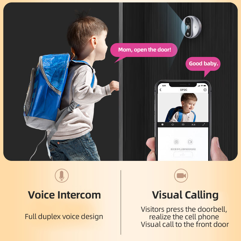 Batterie intégrée Vision nocturne électronique numérique intelligent caché judas de porte avec sonnette de moniteur