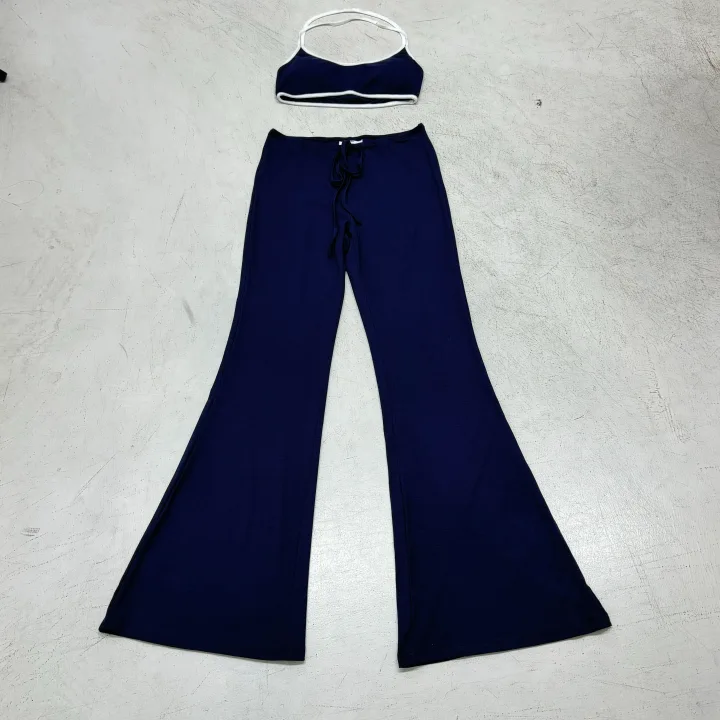 Built-in Bra Cami Patchwork Contrast Color Sport Set Knit Yoga Long Pants Casual Two-Piece Set