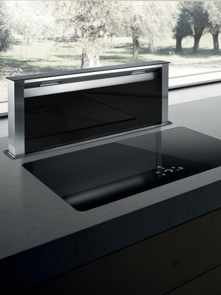 Hotte de cuisine électrique encastrée dissimulée avec boîtier en acier inoxydable et débit d'air de 25 m³/min pour cuisine ouverte