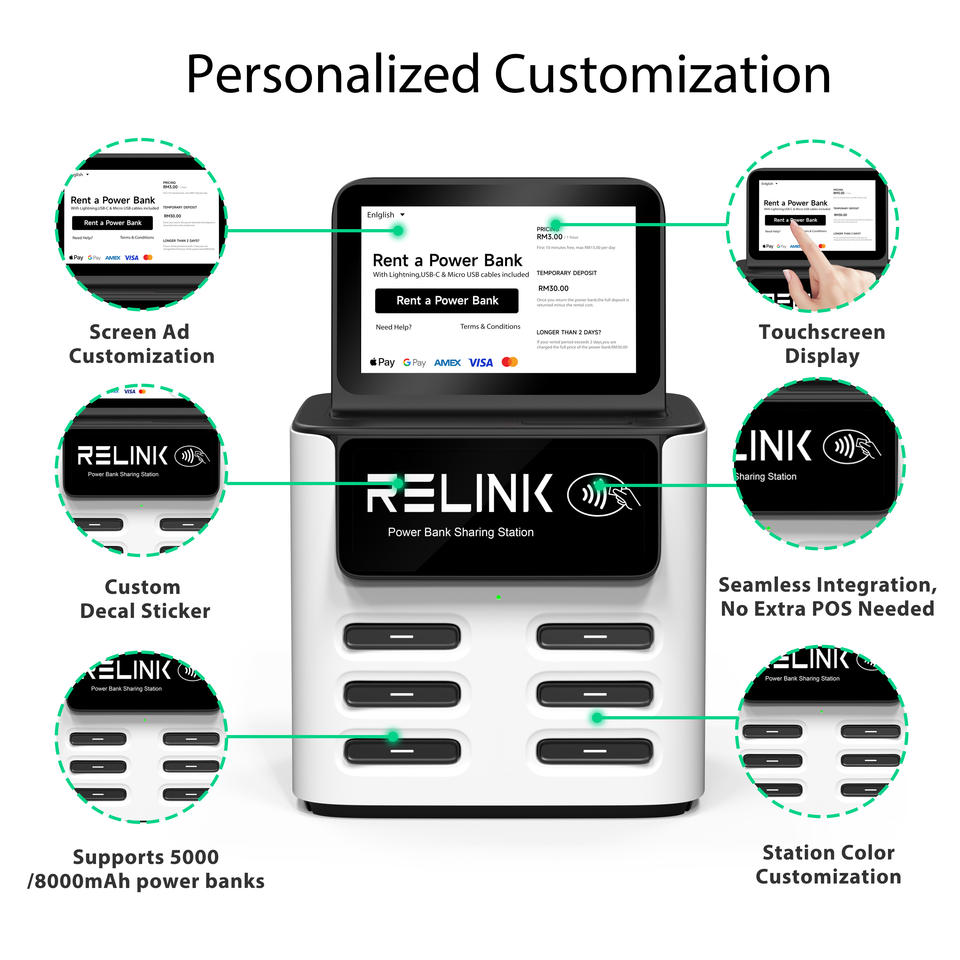Distributeur automatique avec lecteur de paiement intégré, batterie externe pour téléphone, 6 emplacements, kiosque de location avec système de paiement intégré, station de recharge mobile plug-and-play