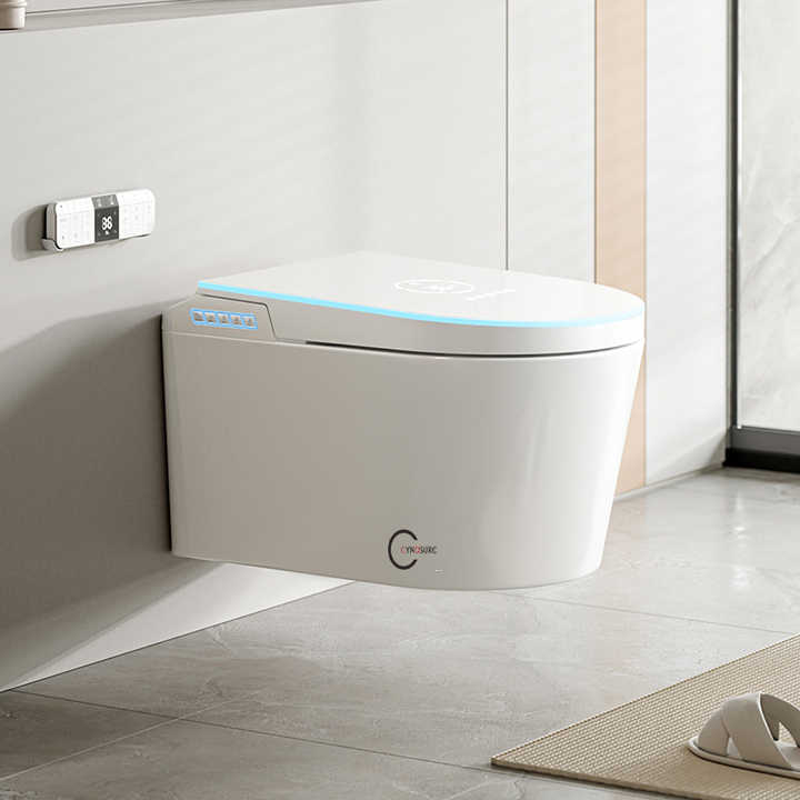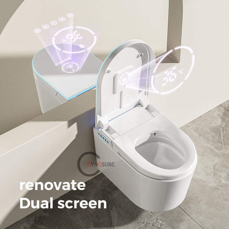 WC Suspendu Intelligent avec Réservoir Intégré, Fonctionnement Automatique, Kit Complet : Tuyau d'Arrivée d'Eau, Robinet d'Angle et Support
