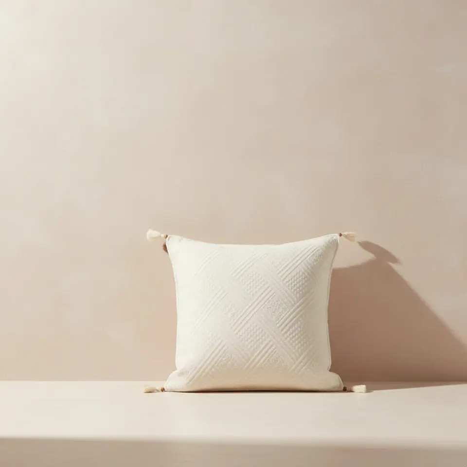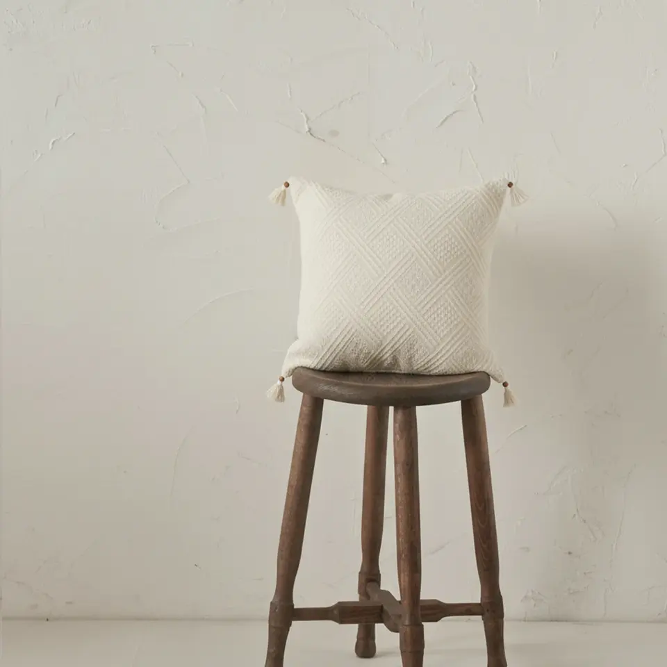 Coussins de siège décoratifs en tissu de coton, style bohème authentique, avec dentelle brodée et pompons, à motifs géométriques croisés