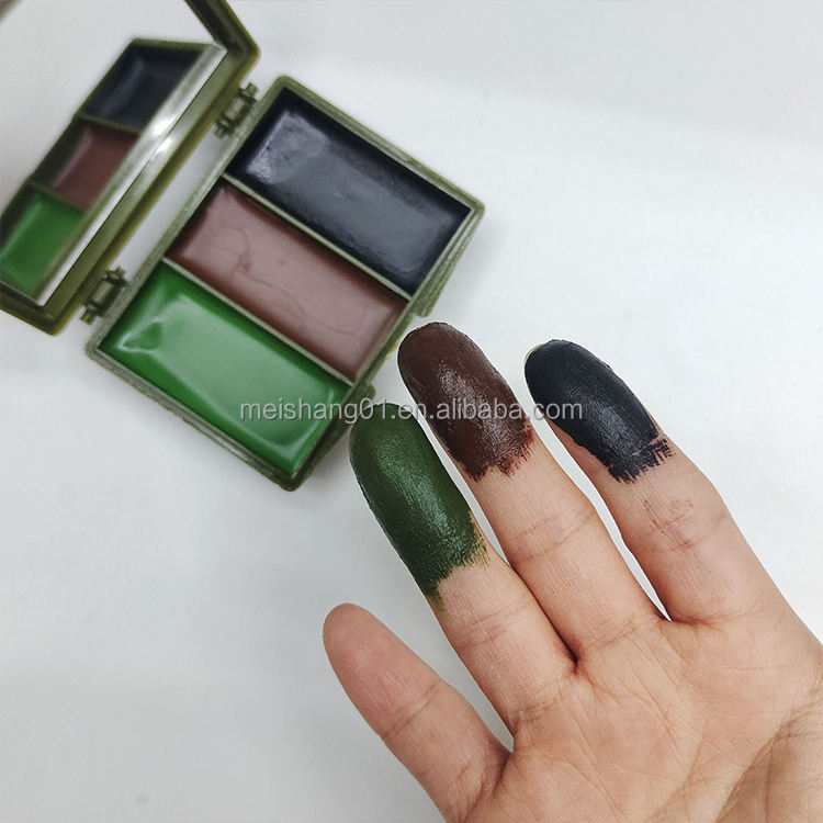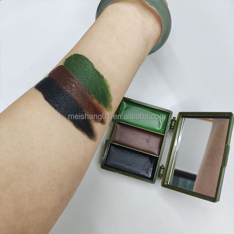 Kit de peinture camouflage visage 3 couleurs en gros | Ensemble de peinture camouflage | Étui portable avec miroir | Vente en gros d'articles d'extérieur et de cosplay.