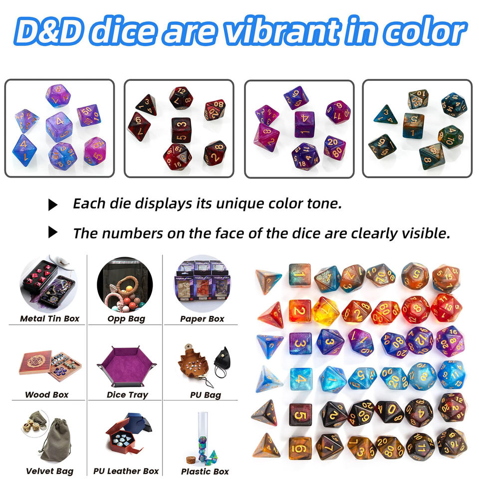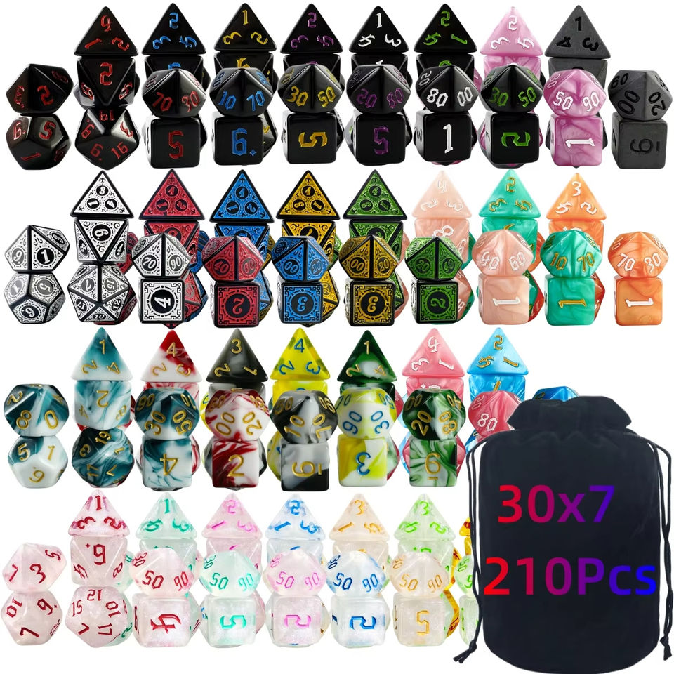 Lot de 7 jeux de dés polyédriques en résine acrylique pour RPG et D&D, 210 pièces au total