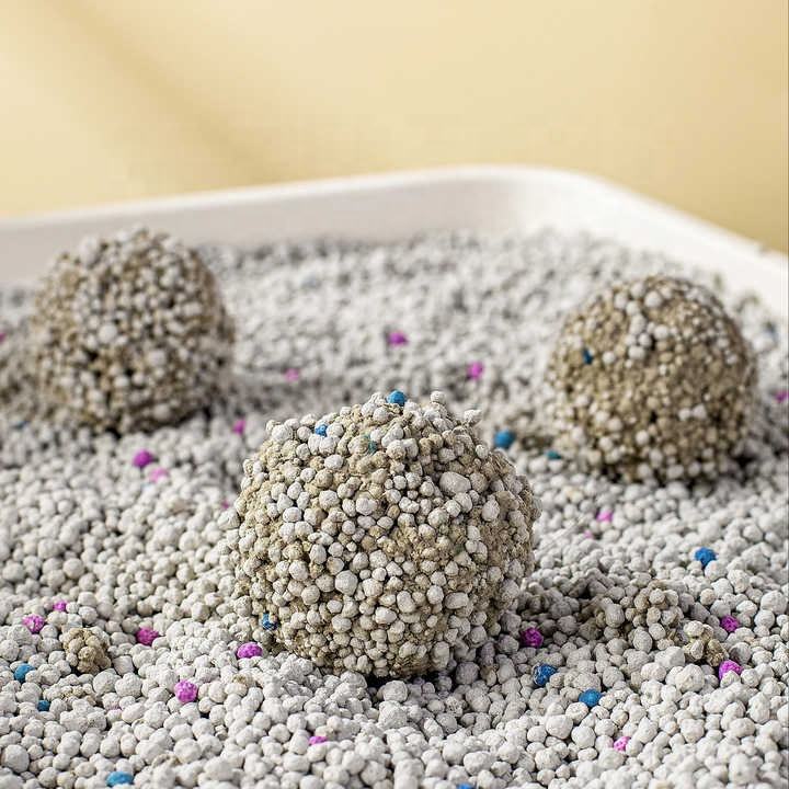 Litière pour chat en bentonite en vrac, faible teneur en poussière, agglomération rapide, hautement absorbante, forme sphérique, couleur grise pour chats, livraison rapide