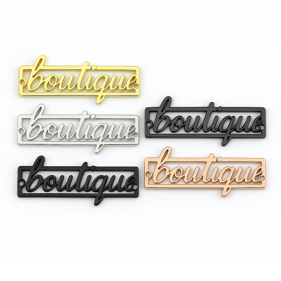 Étiquettes de vêtements en métal personnalisées de marque bon marché en vrac avec logo en relief 3D lavable pour vêtements, sacs, chaussures
