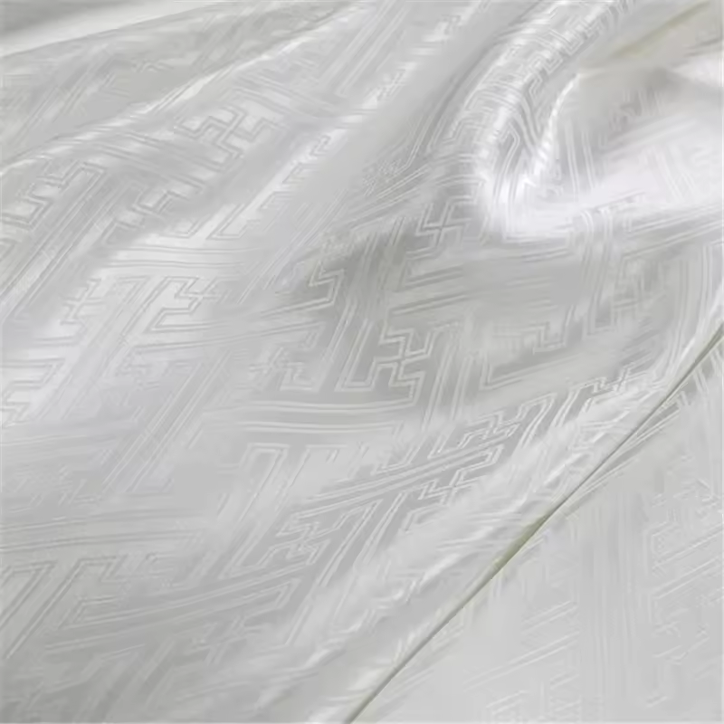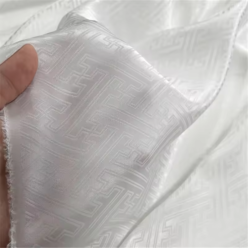 En vrac Pas Cher Prix Classique Chinois Motif Viscose Soie Jacquard Tissu pour Femmes Mode Vêtement en Couleur Blanche