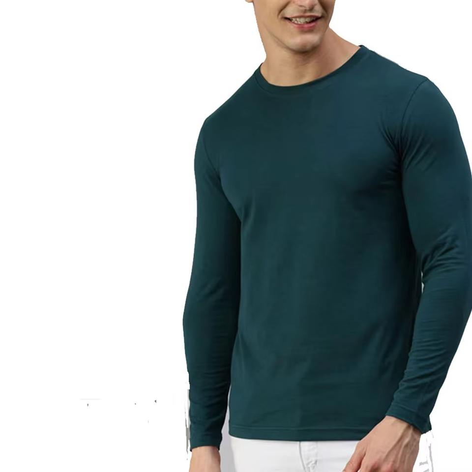 T-shirts en gros, prix direct usine, manches longues, OEM, chemises marron pour hommes à manches longues, col rond, performance