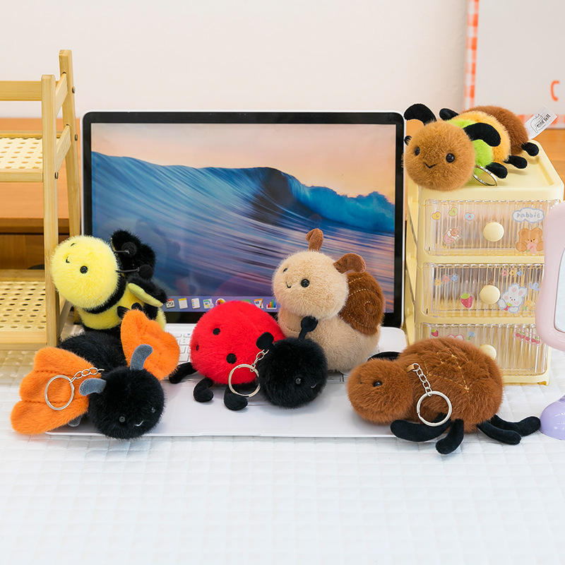 Bulk Custom Cotton 3D Plush Insect Keychain Backpack Pendant Doll Cute Spider Caterpillar Ladybug Snail Moth Stuffed Toy Bag