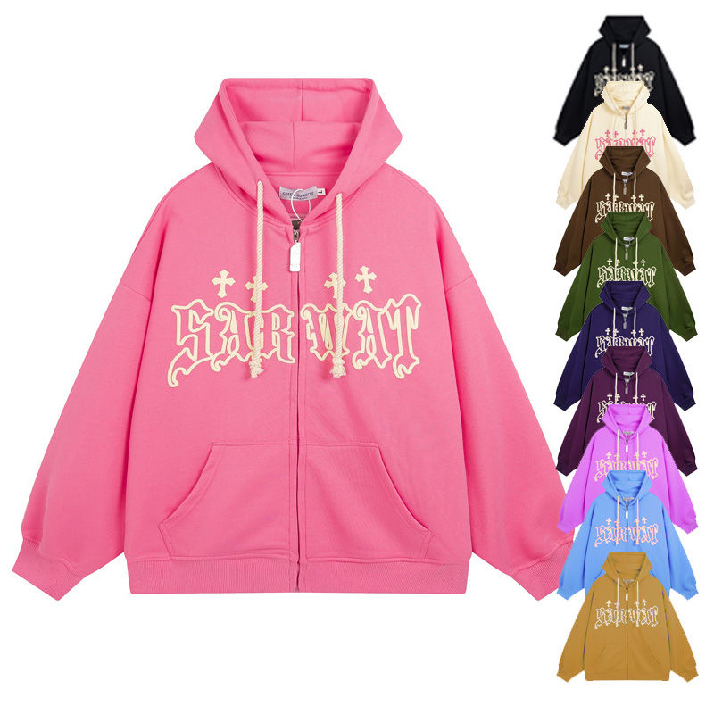 Sweat à capuche unisexe personnalisé avec logo brodé ou imprimé, imperméable, respirant, col rond, fermeture éclair, motif 3D, 100% coton molletonné, coupe classique