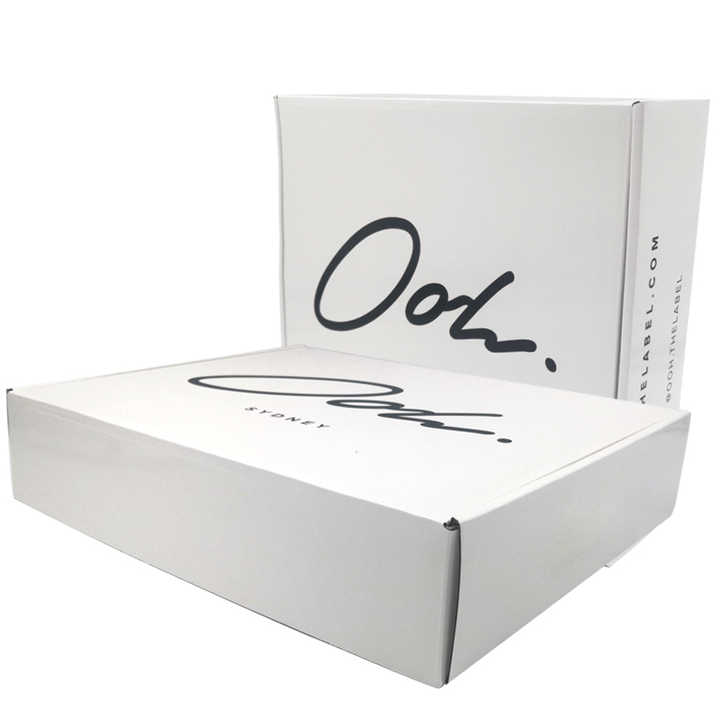 Réductions en gros disponibles Film brillant blanc personnalisé 12x12x6 boîte d'expédition emballage de boîte postale pour vêtements de sport