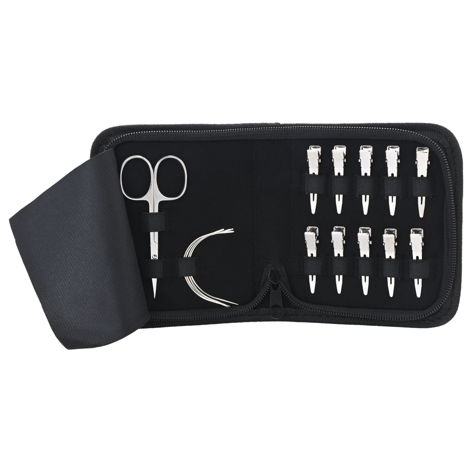Kit d'outils d'extension de cheveux en vrac coupe de cheveux pinces à billets de canard aiguilles incurvées en forme de C pour tirer des ciseaux à cheveux coupe facile