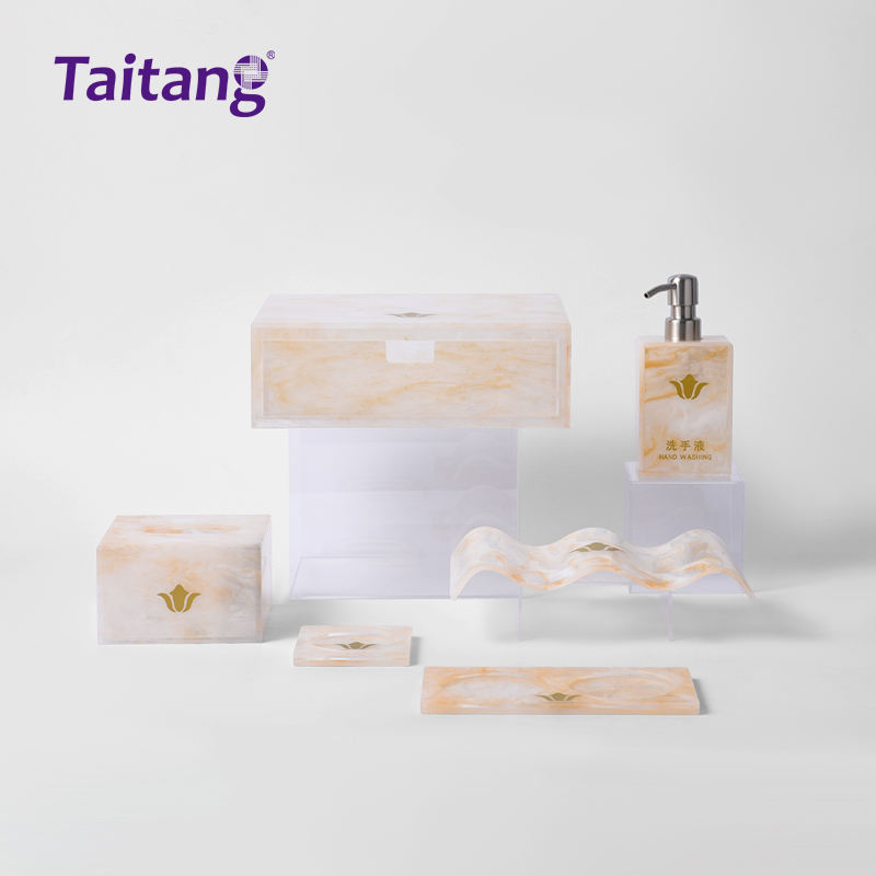 Boîtes de rangement en acrylique pour fournitures hôtelières en gros, ensemble d'accessoires pour hôtel