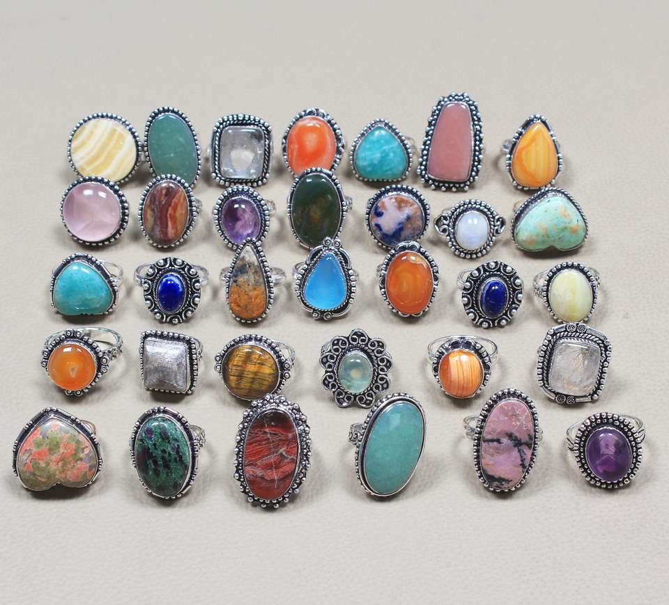 Lot en vrac argent plaqué bagues faites à la main assorties cristal Boho Hippie avec pierre naturelle mélange forme taille bagues en pierre bijoux de mode