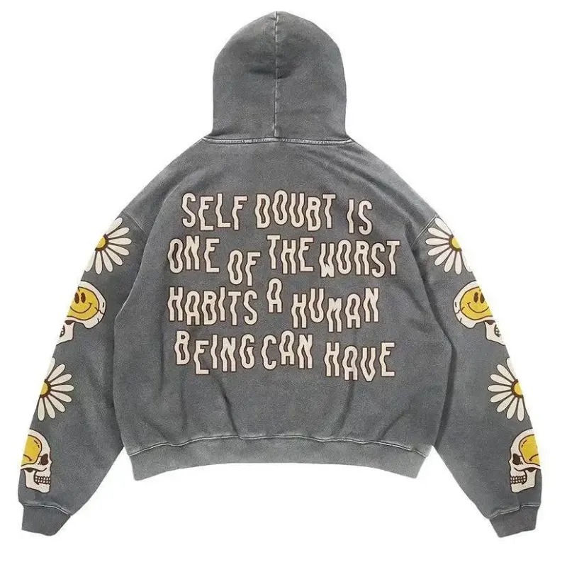 En vrac hommes lavé à l'acide 100% coton hommes sweats à capuche pas cher en détresse vêtements de travail Style basique à la mode 2025
