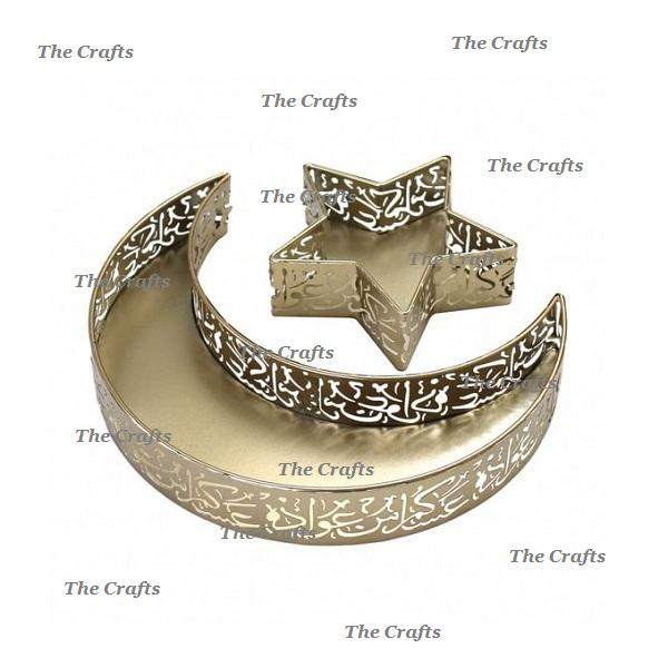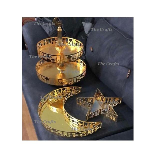 Ensemble de trois plateaux islamiques en métal couleur or, différentes tailles et formes, compatibles lave-vaisselle, sans danger pour les aliments, pour la restauration hôtelière