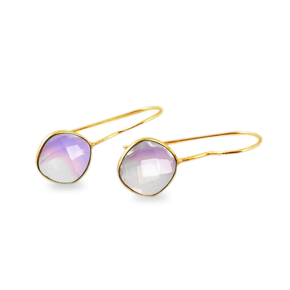 925 argent boucles d'oreilles goutte 8 MM fil d'oreille en vrac opalite pierre précieuse coussin balancent bijoux pour femmes en vrac Moissanite boucles d'oreilles