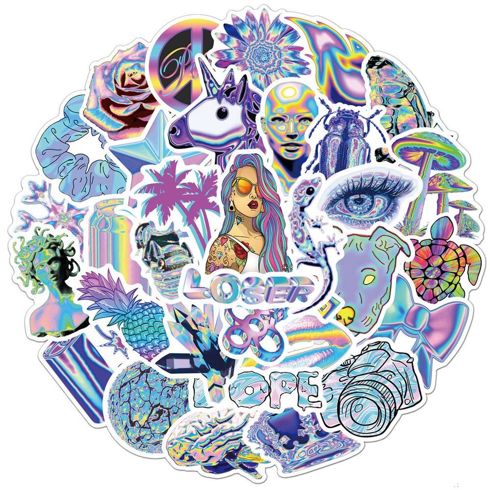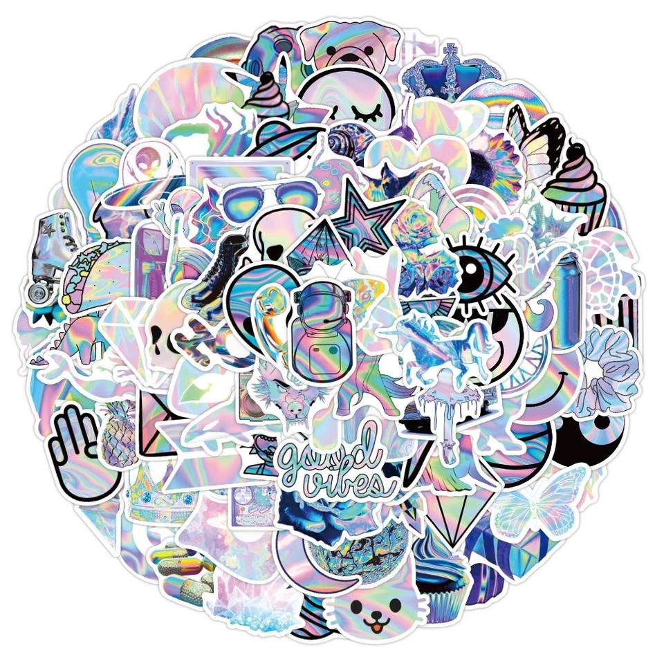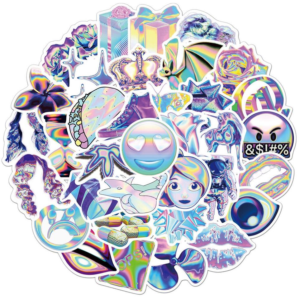 Commande en gros d'autocollants PVC holographiques découpés sur mesure | Autocollants muraux imperméables protégés contre les UV, autocollants mignons pour fenêtre, décoration créative