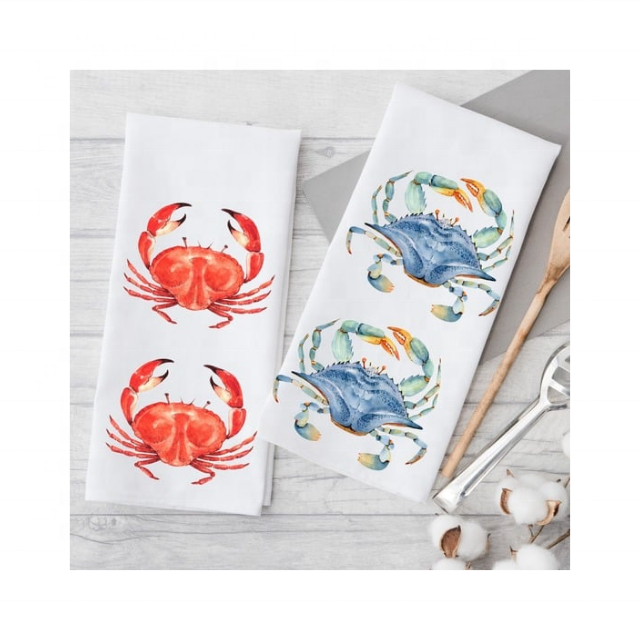 Serviette de cuisine de golf brodée motif crabes marins, commande en gros, 45x70cm, 320GSM, tissage en coton durable, destinée aux clubs de vente en gros et de détail