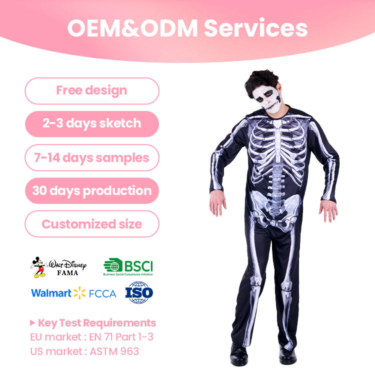 Combinaison à imprimé squelette, costume de squelette effrayant pour spectacle de scène, Halloween, commandes en gros