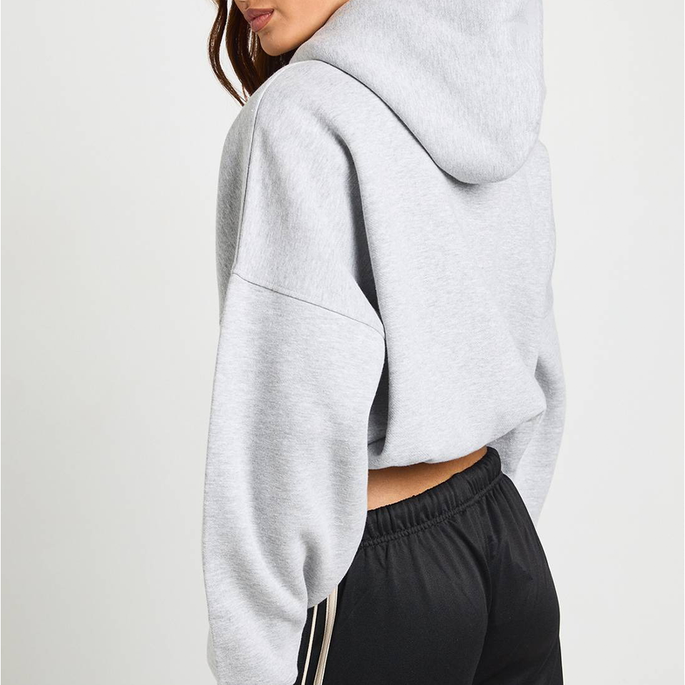 Veste à capuche zippée pour femme, personnalisable en gros, 230 GSM, en pur coton, coupe courte, double couche, épaules tombantes, impression sérigraphique, style streetwear