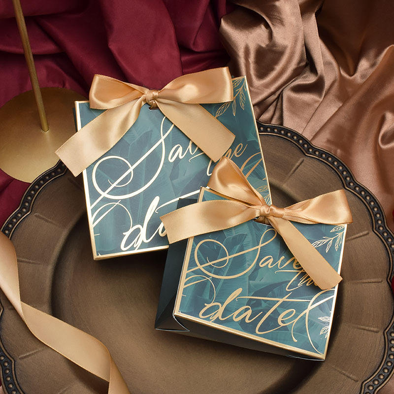 Boîtes à bonbons de mariage pliables exquises en gros, personnalisées pour les cadeaux de luxe magnifiques des invités, papier kraft biodégradable