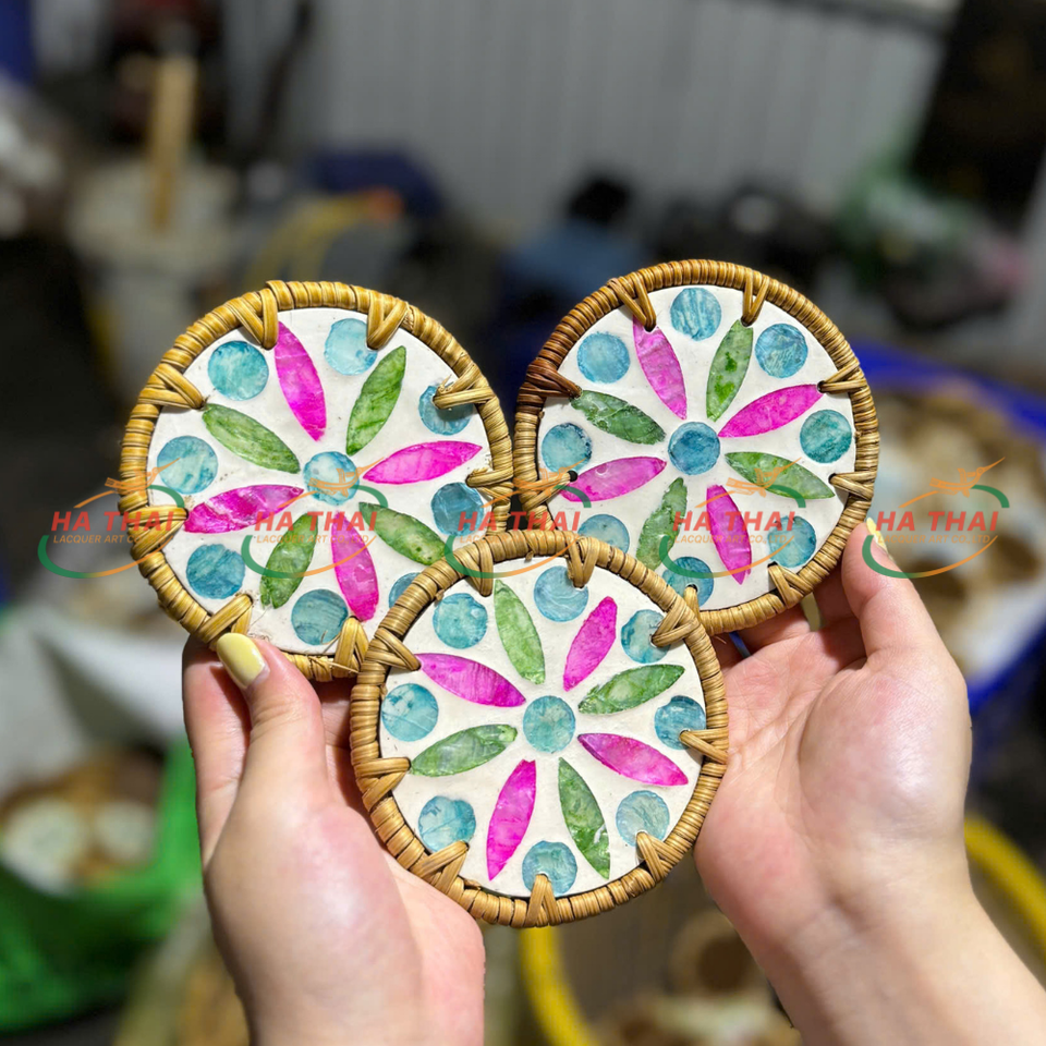 Sous-verres en nacre avec bord en rotin pour thé et café – Achat en gros – Prix usine – Exportation Vietnam