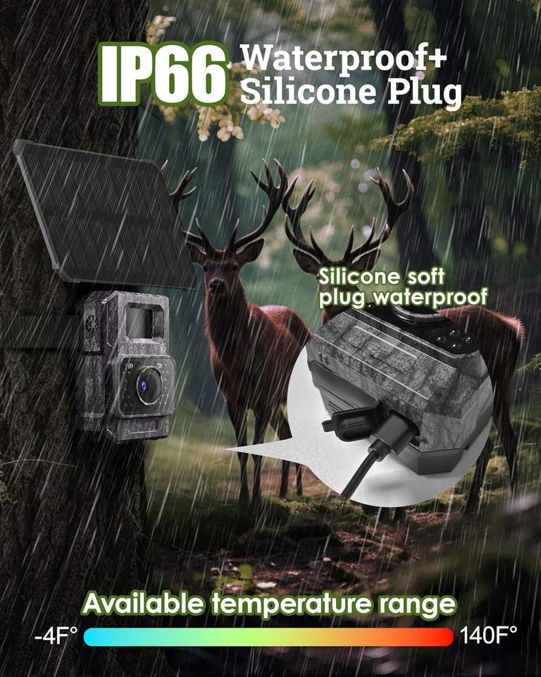 Caméra de chasse solaire en gros 48MP 1080P avec capteur CMOS, batterie 5200mAh, WiFi, étanche IP66, vision nocturne et détection de mouvement
