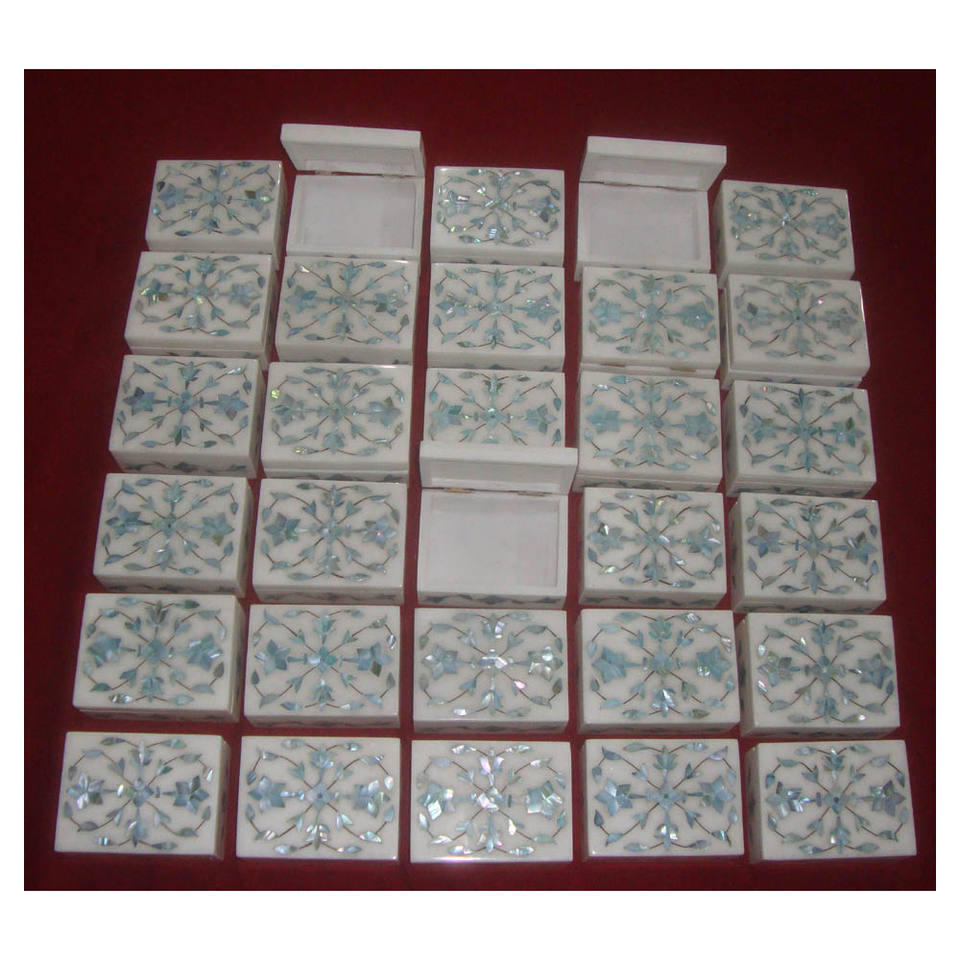 Boîtes à dragées rectangulaires en marbre blanc pur italien, personnalisables avec des incrustations artistiques, idéales pour les mariages (quantité en gros)
